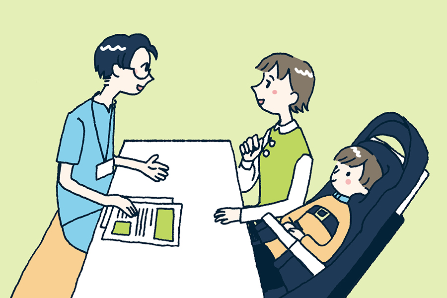 | 医師・看護師からは…… | 疾患についての情報や対応の注意事項、口内や気管カニューレ(気管切開後の空気の通路)内の痰の除去、心肺蘇生の手技、医療機器の使用方法 |