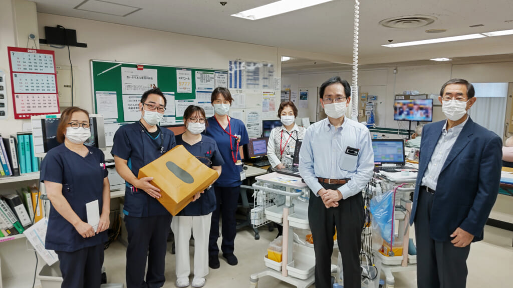 7月24日、神奈川区医師会の岩田篤人会長と監事の中村直樹医師が済生会神奈川県病院に来院し、同院が取り組む「断らない医療」に対して、感謝の気持ちを伝えてくださいました。