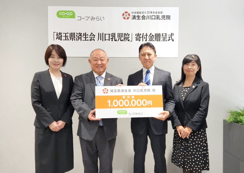2025年10月28日、生活協同組合コープみらいから済生会川口乳児院に100万円の寄付がありました。この寄付は、2023年に済生会とコープみらいが締結した「インクルーシブ社会の実現に向けた連携協定」に基づくもの。また、クラウドファンディングの周知にも多大な協力をいただきました。