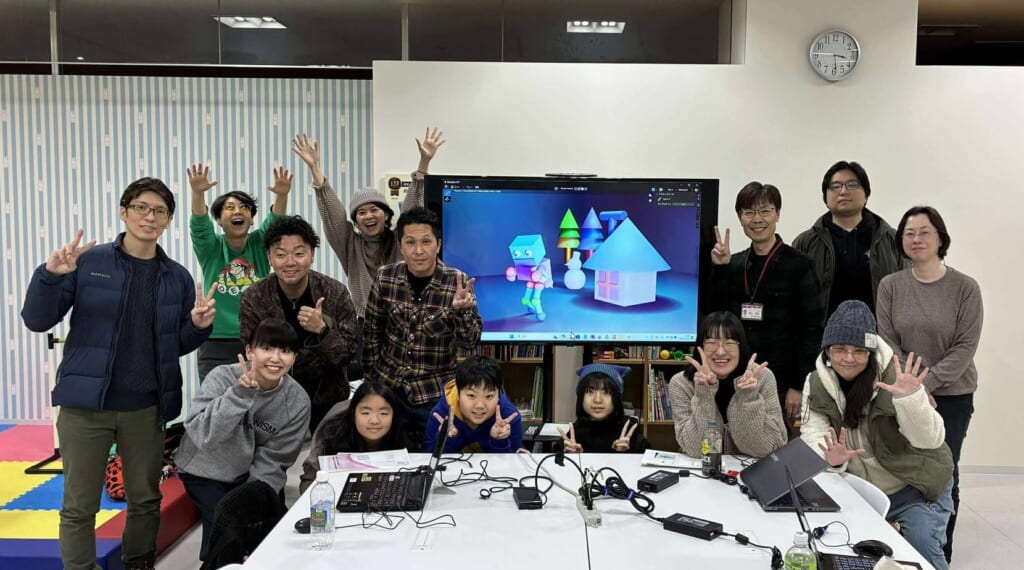 その一環として、札幌からプロのクリエイターを招き、「3DCG合成でショート動画づくり講座」を済生会スクエアで開催。12月~1月の全4回で、3DCGソフトウェア「Blender」や視覚効果「VFX」を駆使し、動画完成を目指します。参加者は小学3年生から60代までの20人。12月の講座では全員が操作を覚え、魚やロボットの3DCGを作成しました。画面の中で動く自分の作品を、目を輝かせて見つめる子どもたちの姿が印象的でした。1月はいよいよ動画づくりです。