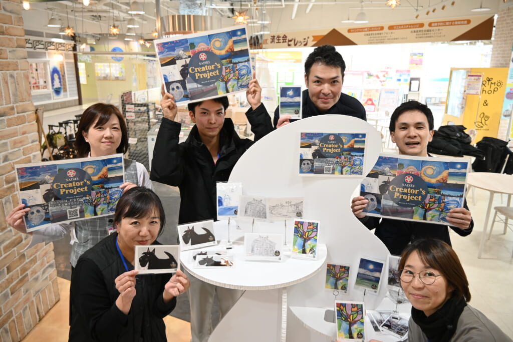 スタートメンバーとして同会が運営する小樽市南部地域包括支援センターで支援する認知症の方やフリースクールに通う生徒、さらに趣旨に賛同した台湾のサポートクリエイターも参画しました。今後は全国の済生会と連携し、クリエイターの発掘と商品化を行なっていく予定です。